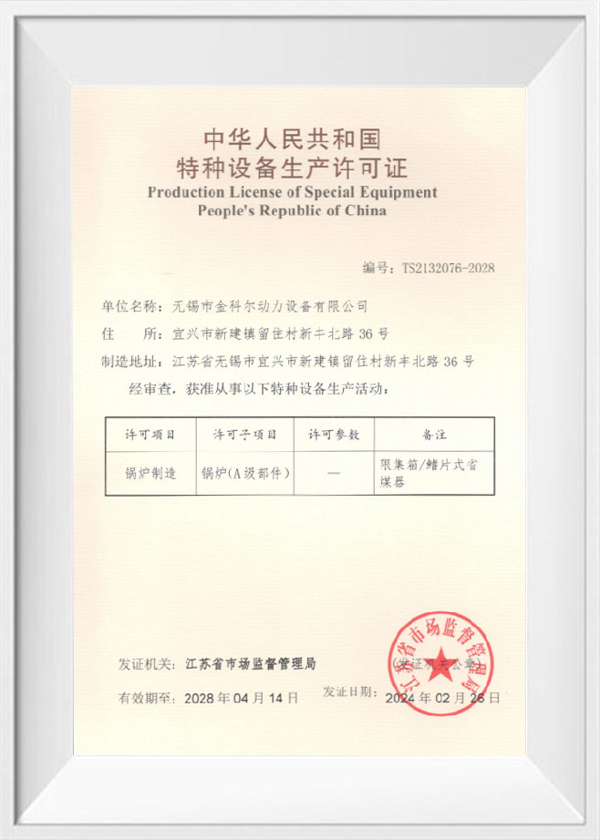 Sme podnik s výrobnou licenciou na časti kotlov úrovne A (hlavička, úspora paliva), podnik s kvalifikáciou ASME-S, ISO9001, ISO14001, ISO45001, ISO 3834-2. $ $